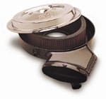 A recent addition to our Custom 66 Series™, these 14” assemblies feature a billet aluminum spoked lid with a carbon fiber insert. Both fit 5 1/8” carburetor flanges. Full assemblies shown on Custom 66 page.